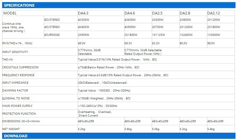 DA Series professional power amplifier is a high quality digital amplifier developed for the fixed installation market, using multi-loop control technology and modular design, with high reliability, sufficient power, outstanding sound, strong adaptability and other advantages. The switching power supply adopts active PFC and soft switching technology, which can adapt to the harsh grid environment. According to the characteristics of fixed installation, the chassis structure is optimized, the operation is more intuitive, and can better meet the use of narrow space.